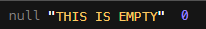 obj라는 변수에 위에 선언한 여러 타입의 변수들을 저장해 Object를 만들고 구조 분해 할당을 해봅시다.const obj = { nullVal, undefVal, blankVal, spaceVal, zeroVal, falseVal, nanVal }; const { nullVal: desNull = "THIS IS EMPTY", undefVal: desUndef = "THIS IS EMPTY", zeroVal: desZero = "THIS IS EMPTY" } = obj;nullVal,undefVal,zeroVal을 구조 분해 할당하며 Default Value로THIS IS EMPTY를 설정해보았습니다. 이 세 변수를 출력해보면